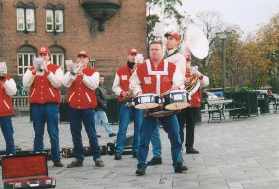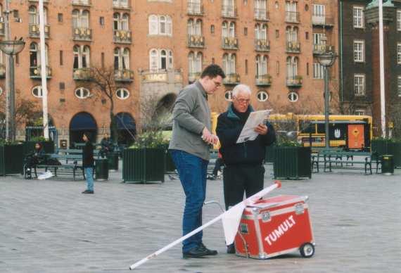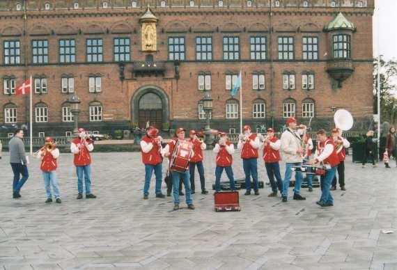 Olle's aankondiging op Raadhuisplein te Kopenhagen
